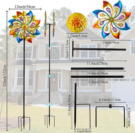 DREAMSOUL 13" Dia Wind Spinners Outdoor with 4 Prong Stakes, Kinetic Metal Wind Spinners for Yard and Garden Decor (52 * 13 Inches)