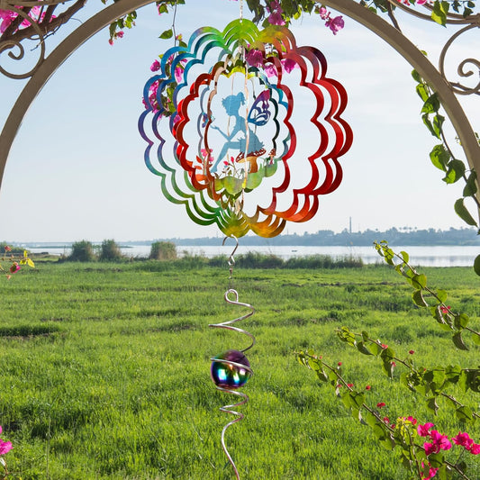 Fairy Wind Spinner - Kinetic Hanging Wind Sculpture | 12-Inch 3D Windcatcher for Garden, Metal Art Yard Decor, Outdoor Ornament & Lovely Gifts for Mother, Wife, Daughter, Girls & Women