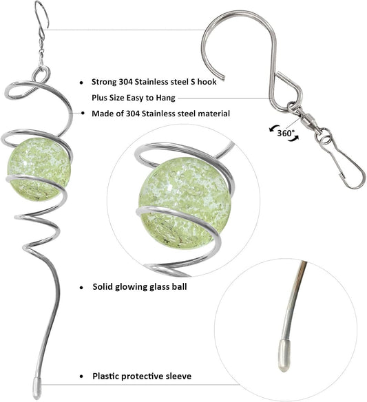 Glow in The Dark Wind Spinner Tail Gazing Ball Spiral Decorative Spiral Tail Wind Spinner Stabilizer Sun Catcher,Indoor Outdoor Hanging Art Garden Decoration Wind Sculpture Stabilizer-13in