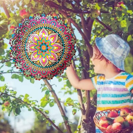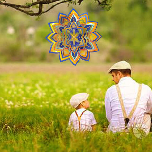 Mandala Blossom Wind Spinner - Metal Wind Spinners | 12inch 3D Kinetic Laser Cut Hanging Wind Sculpture & Wind Catcher | Outdoor Decor for Garden, Patio, Yard Art