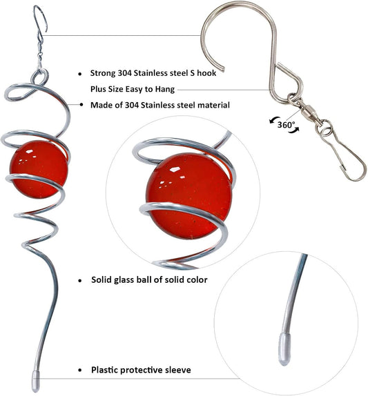 Gazing Ball Spiral Decorative Wind Spinner Sun Catcher 11inch Tail and 2 inch Glass Orb. Indoor Outdoor Garden Decoration Wind Sculptures Wind Spinner Tail-13 inch Height (red)