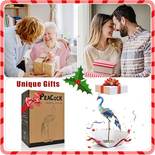 Nacome Metal Peacock Statues for Garden Decor: Outdoor Sculptures Clearance Lawn Ornaments for Patio Balcony Front Backyard - Unique Gifts for Grandma Mom