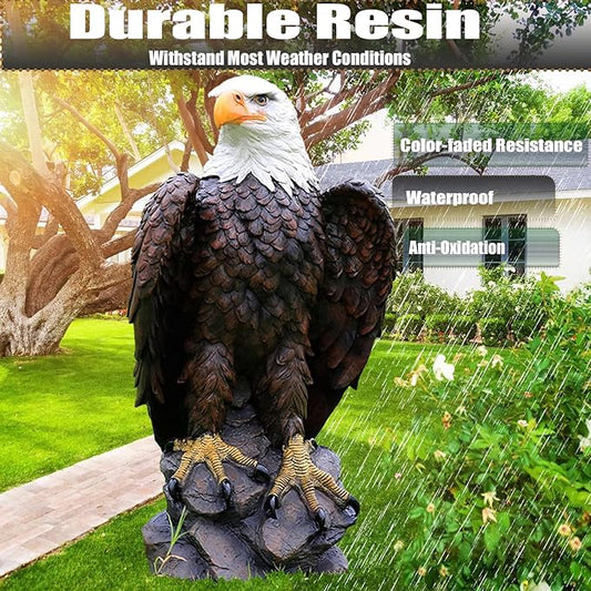 15.35in Majestic Lifelike Bald Eagle Statue - Durable Resin Garden Sculpture for Outdoor Lawn Decoration & Indoor Art Display Courtyard Decoration