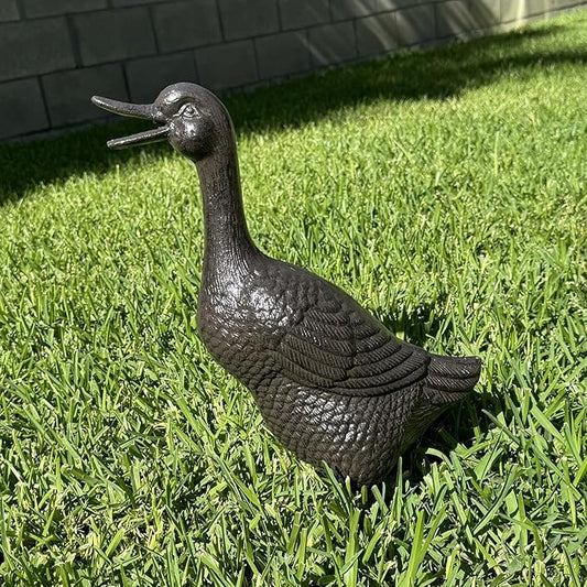 Cast Iron Duck Statue(15.7" Tall) - Heavy Duty Outdoor/Indoor Decor, Rust Brown Garden Art with Lifelike Feather Detailing, Weatherproof Bird Sculpture for Patio, Lawn & Home HC5387