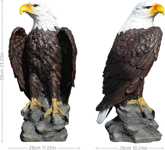 H:23.2in Outdoor Great Eagle Sculpture Garden Decoration Hand-Painted Bald Eagle Decoration - Bald Eagle Statue, Majestic American Indoor/Outdoor American Office, Courtyard Decoration