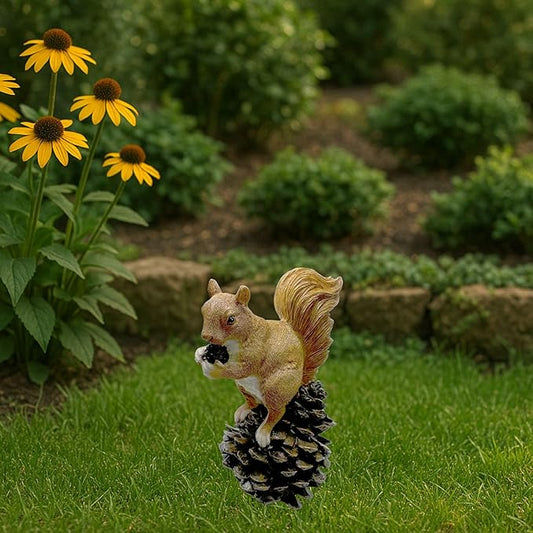 Squirrel on Pinecone Garden Statue – 6 inch Polyresin Outdoor Figurine, Weatherproof Wildlife Decor, Rustic Yard Ornament for Patio, Lawn & Home Accents