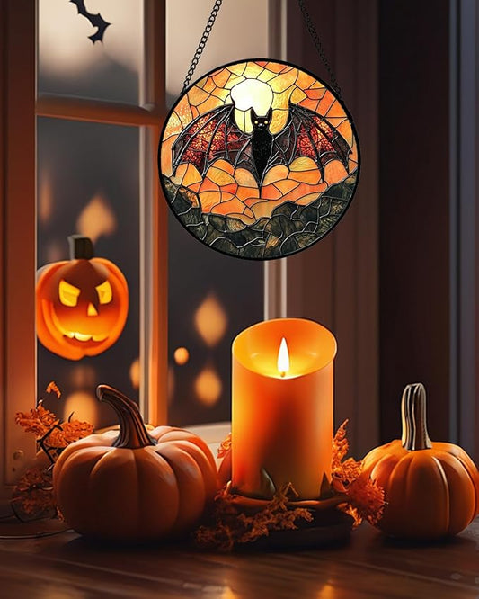 Stained Glass Window Hanging, Black Bat Sun Catcher for Door Home Decor Animal Suncatcher Christmas Mother's Day Birthday Gifts for Women Men Mom and Nana 15 in