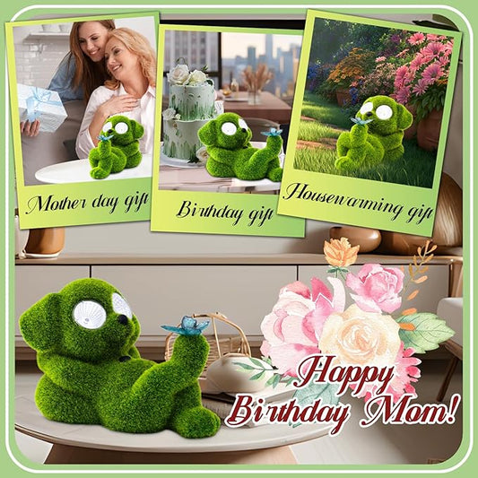 Solar Topiary Dog Garden Statue with Butterfly Garden Decor Clearance for Yard Decorations Outdoor Lawn Ornaments Porch Patio Balcony - Birthday Gifts for Grandma Mom Women