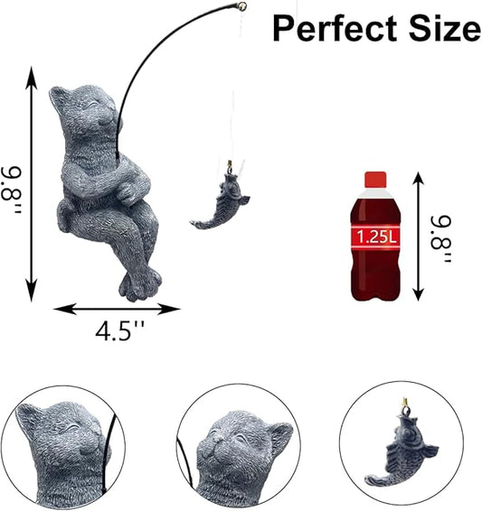 Cat Fishing Statue Garden Decor – 9.8" Weatherproof Resin Cat Fishing Sculpture Decor for Fish Ponds, Koi Ponds, Waterfalls, Poolside & Outdoor Gardens– Resin Figurine for Indoor & Outdoor Décor