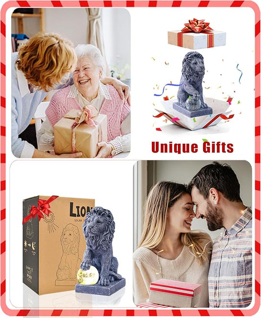 Nacome Guardian Lion Garden Statue: Outdoor Decor Sculpture with Ball Lights for Yard Art Porch Patio - Unique Birthday Gifts for Women Mom