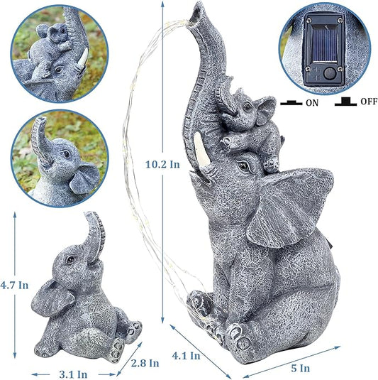 FORUP Garden Elephant Statue, Solar Elephant Statues for Garden Decor, Elephant Figurine with Solar Watering Lights, Elephant Outdoor Sculptures for Outside Porch Patio Balcony Front Yard