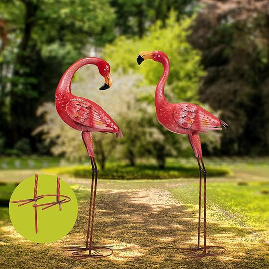 Metal Flamingo Garden Statue, 40" Tall Outdoor Decor Flamingos Yard Art Sculptures and Statues Reinforced Foot, Weatherproof Flamingo Ornaments for Lawn Pool Backyard Decor, Set of 2