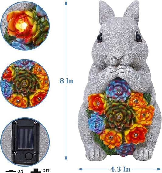 FORUP Easter Solar Garden Outdoor Statues, Bunny Statue with Succulent, Resin Figurine Garden Lawn Ornaments with 8 LED Lights, Rabbit Statue for Easter Outdoor Lawn Yard Garden Decorations