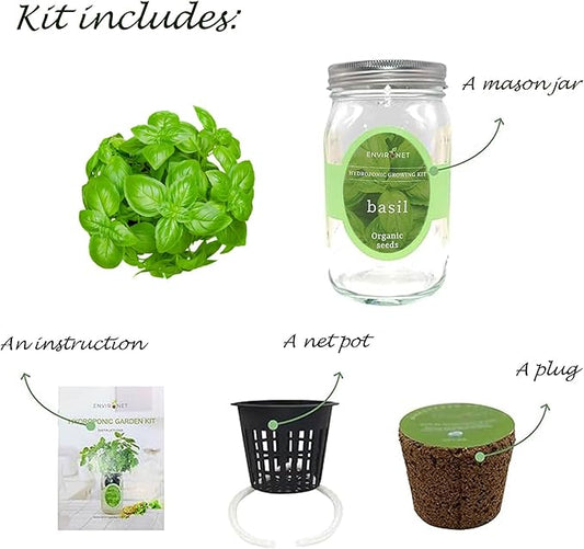 Hydroponic Growing Kit, Self-Watering Mason Jar Herb Garden Starter Kit Indoor, Windowsill Herb Garden, Grow Your Own Herbs from Organic Seeds (Basil)