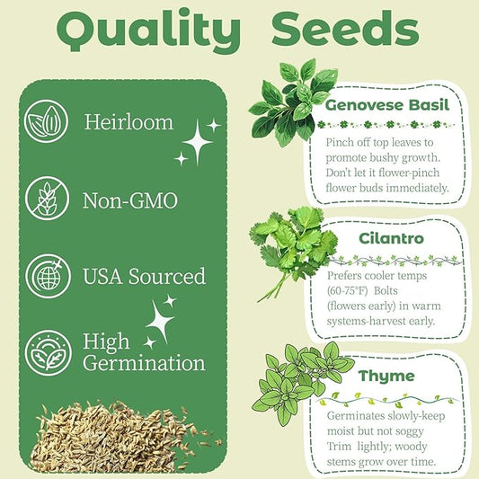 Herb Seed Pods Kit Hydroponic - Refill Pod for All Indoor Garden, 8 Grow Pods with Seeds of Genovese Basil, Cilantro and Thyme, Compatible with All Hydroponics Growing Systems