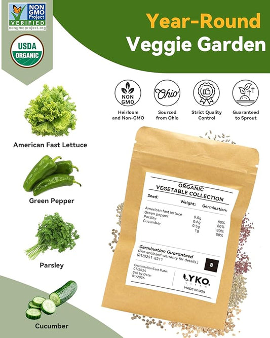 Vegetable Salad Green Seed Pod Kit for Aerogarden, Ahopegarden Hydroponics Growing System Indoor Garden, Include American Fast Lettuce, Green Pepper, Cucumber, Parsley, 16 Pods, 500+ Seeds