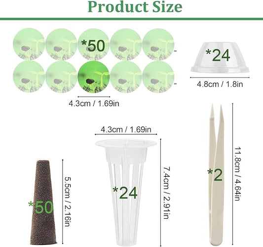 150P Grow Sponges for Hydroponics, Windspeed Grow Anything Seed Pod kit Include 50 Grow Sponges, 24 Grow Baskets, 24 Grow Domes, 50 Pod Labels, 2 Tweezers
