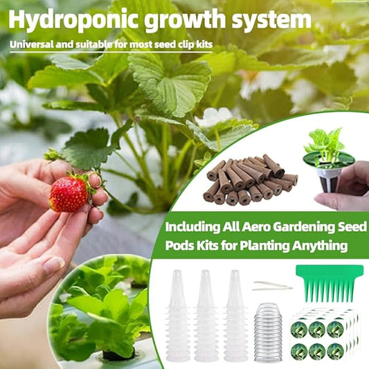 LYKOCLEAN Hydroponic Seed Pod Kit Compatible with AeroGarden, Ahopegarden, iDoo, MUFGA, 8 Pods Complete Growing Anything Garden Supply with Strawberry Seeds, Grow Sponges, Baskets, Domes, Labels