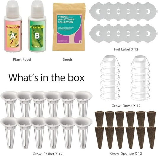 73pcs Seed Pod Kit for Aerogarden, Hydroponics Garden Accessories for System Compatible with Hydroponics Supplies from All Brands, 18 Grow Sponges, 12 Plant Baskets & Domes, 30 Pod Labels, 1 Tweezer
