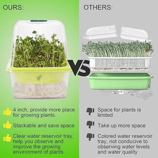 Microgreen Growing Trays, LUVCSOY Sprouting Tray with Humidity Dome, 1.2 mm Small Mesh Holes, BPA Free, Sprouter Kit for Growing Mirco Seeds, Like Broccoli, Alfalfa, Radish, Clover - 4 Pack | Clear
