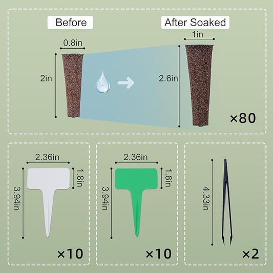 102 PCS Hydroponic Seeds Pods Kit for Indoor Hydroponic Systems,Seed Starter Pods Kit with 80 Pack Grow Sponge,20 Plant Labels and 2 Tweezers