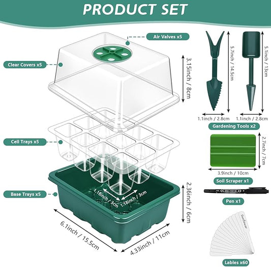 Artcome 5-Pack Seed Starter Tray, 12 Cells Each with Push-Up Ejector - Seed Starter Kit for Rapid Growth and Healthy Seedlings at Home - 60 Cells in Total