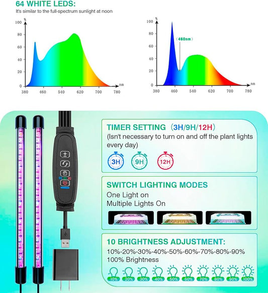 Seed Starter Tray with Grow Lights and Heat Mat, 3-in-1 Soil Meter, 80-Cell Seed Growing Tray, Germination & Plant Propagation Station for Indoor Plants 2-Pack