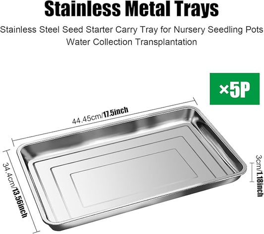 5 Pack Large Stainless Steel Seedling Trays, Heavy Duty Metal Water Catch Trays for Nursery Pots-Transplant, Seed Germination & Propagation Flats (17.5 inch×13.56 inch, 1.18" Height)