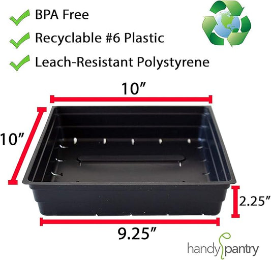 10" x 10" Garden Growing Trays with Drain Holes - 10-Pack Recyclable Plastic Plant Trays for Wheatgrass Sprouting Tray, Microgreens Growing Trays, Hydroponic Trays, Nursery Flats, Greenhouse Supplies