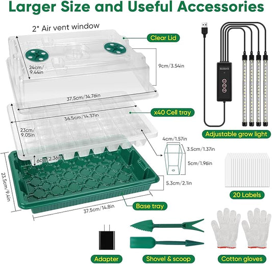 BlumWay Seed Starter Tray with Grow Light,4 Pack 160 Cells Seedling Tray with Humidity Dome/Indoor Grow Kit for Deep-Rooted Seedlings,Adjustable/Timed Light Plant Starter Set