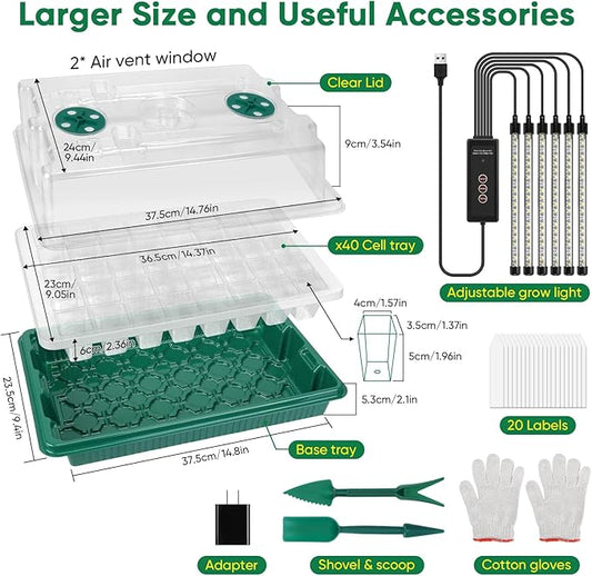 BlumWay Seed Starter Tray with Grow Light,80-Cells Seedling Tray with Humidity Dome/Indoor Grow Kit,1-24 Hours Timed Light Plant Starter Set,White&Blue&Red Grow Light