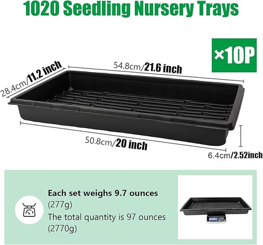 10 Pack 1020 Trays, Extra Thick Heavy Duty Seed Starting Trays - No Holes, No Leak, Reusable Propagation Flats for Microgreens, Seedlings, Plant Germination, Fodder and Transplant