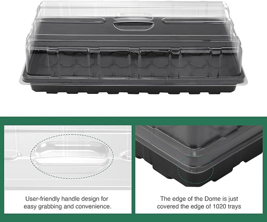 MIXC 5 Pack 1020 Seed Starter Trays with 3.6" Humidity Dome Plant Growing Tray Germination Seed Starting kit, Mini Greenhouse with Handle for Cloning Plant