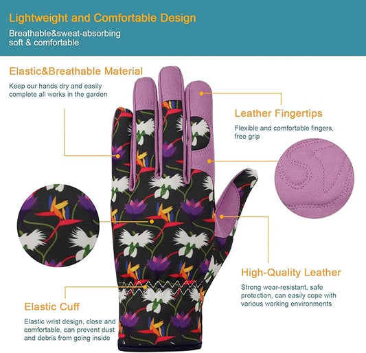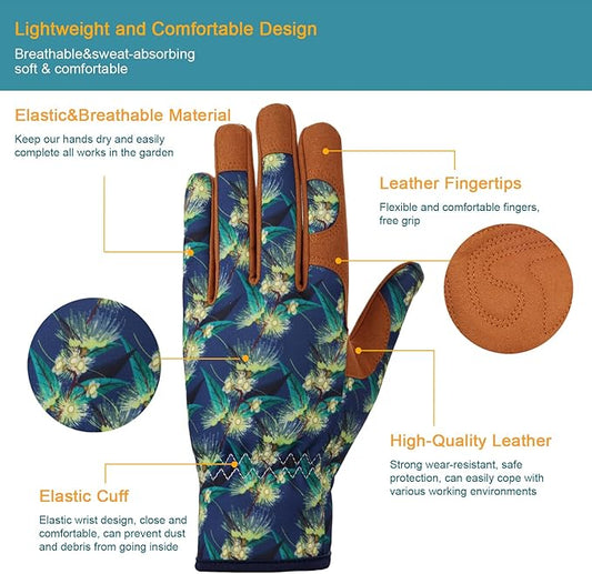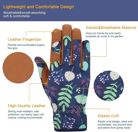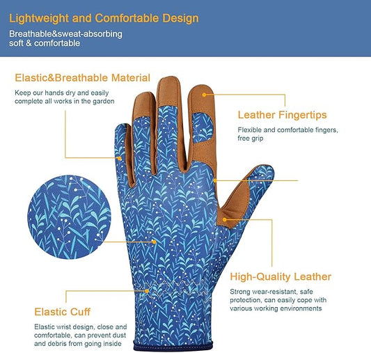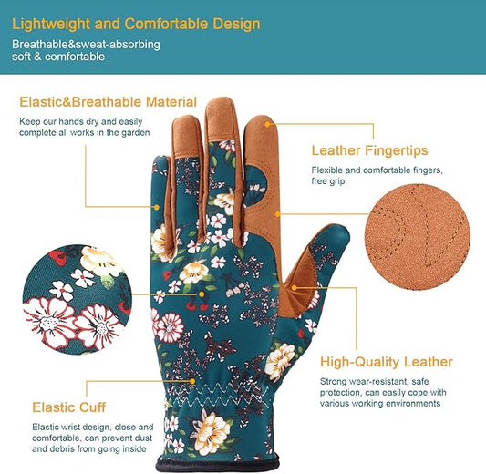Bamllum Leather Gardening Gloves for Women - Working Gloves for Weeding, Digging, Planting, Raking and Pruning