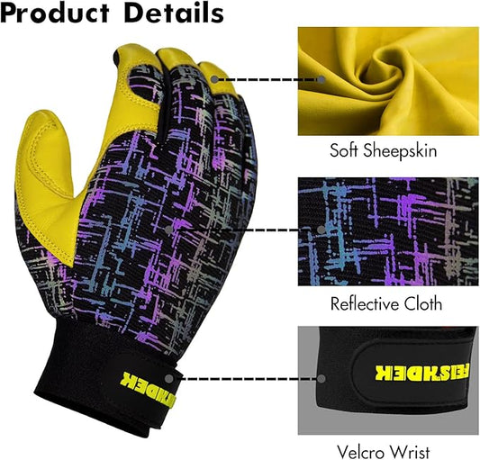 Gardening Gloves for Women and Men, Touchscreen Sheepskin Leather Garden Work Glove for Flex Breathable Yard Working