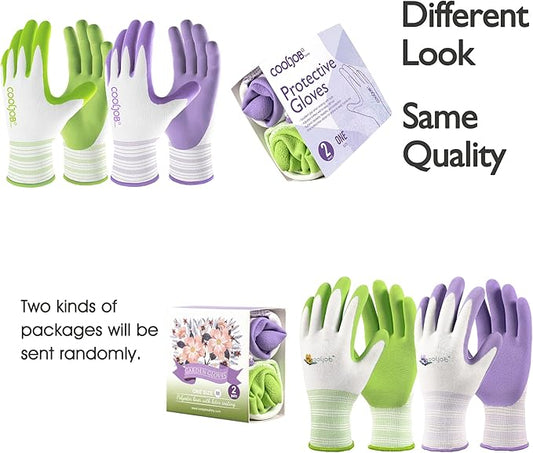 COOLJOB 2 Pairs Gardening Gloves for Women Ladies, Breathable Rubber Coated for Yard Garden, Outdoor Indoor Protective Work, Medium Size, Lavender Purple & Apple Green