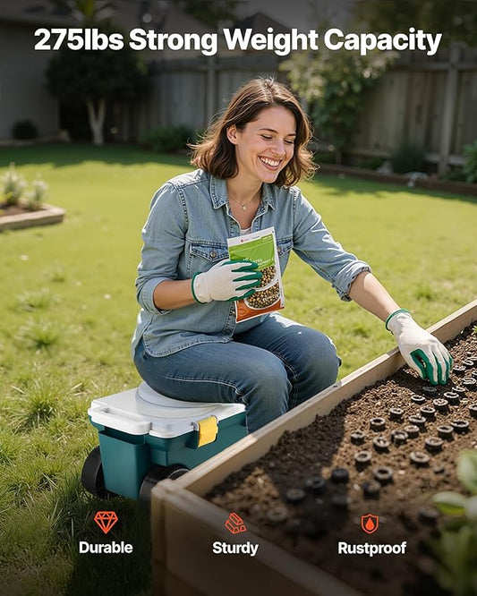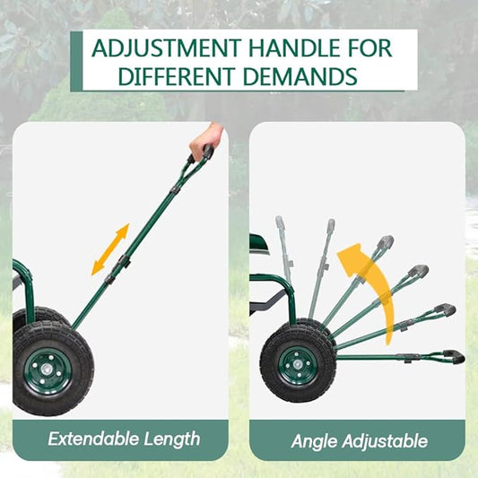 BDL Garden Cart Outdoor Rolling Garden Workseat with Wheels, Heavy Duty Garden Tool Cart with Extendable Handle and Storage for Seniors Yard Gardening Work