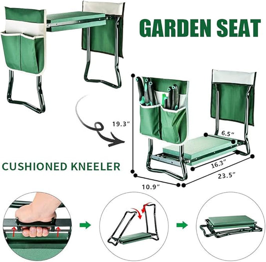 BDL Garden Kneeler Seat Foldable Durable Garden Stool with Tool Bag Pouch and Garden Gloves 330lb Capacity-Protects Your Knees, Clothes from Dirt & Grass Stains