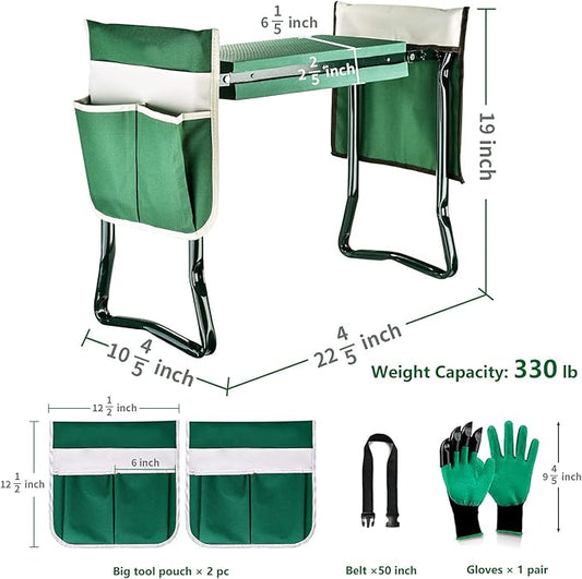 BDL Garden Kneeler and Seat, Upgraded Folding Bench Stool Portable Kneeler, Sturdy Gardening Tools with 2 Free Tool Pouch, Detachable Belt, A Pair of Garden Gloves, EVA Kneeling Pad