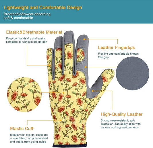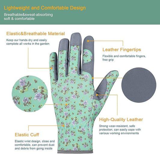 Bamllum Leather Gardening Gloves for Women - Working Gloves for Weeding, Digging, Planting, Raking and Pruning