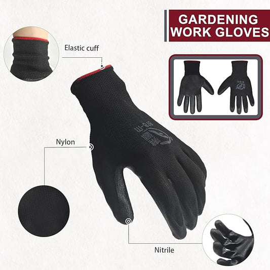 120 Pairs Gardening Work Gloves Bulk for Men Women, Breathable Nitrile Rubber Coated Garden Gloves Dipped Gripping Working Gloves for Construction, Gardening, 9.1 Inch