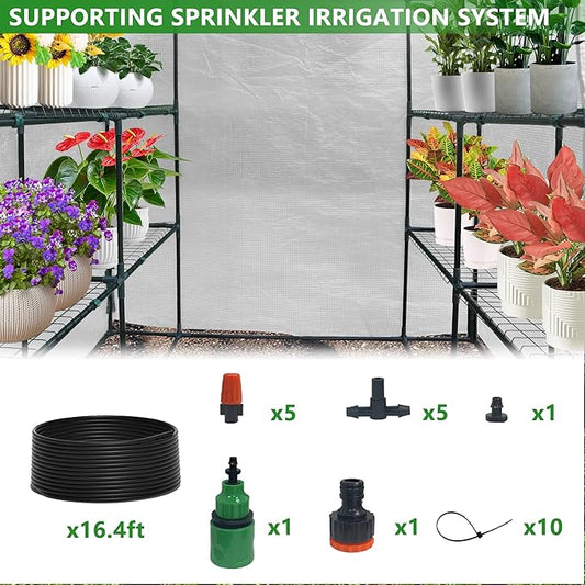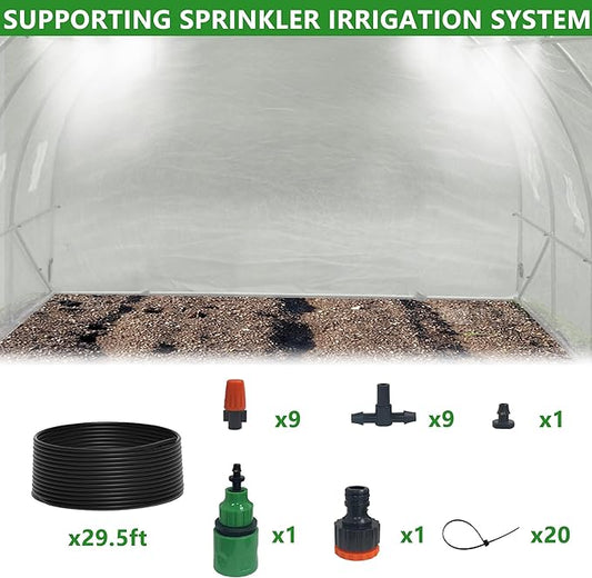13x8.2x6.5 Ft Walk-in Greenhouse Tunnel, Heavy-Duty Portable Greenhouse with Watering System, Roll-up Zipper Door and Window, PE Cover, White