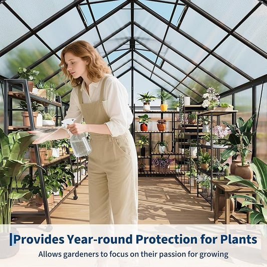 Greenhouses, 8×16 FT Greenhouse, Easy Assembly Aluminum Polycarbonate Greenhouses for Outdoors with Roof Vent, Large Aluminum Walk-in Greenhouse for Patio, Backyard, Garden, Lockable Hinged Door