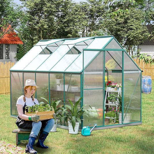 Greenhouse 6x9 FT Aluminum-Framed Heavy Duty Polycarbonate with Quick Setup Structure and Roof Vent Large Enhanced Outdoors Green House Kit