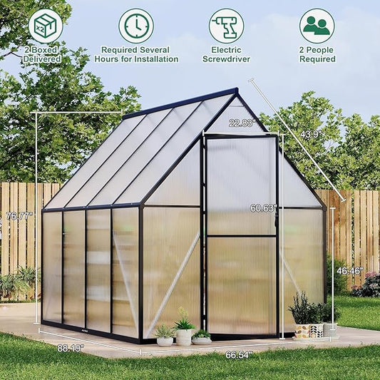 Greenhouse 6x7 FT Aluminum-Framed Heavy Duty Polycarbonate with Quick Setup Structure and Roof Vent Large Enhanced Outdoors Green House Kit