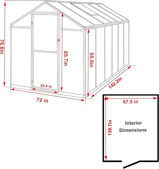 6x6.25FT Greenhouse,Easy Assembly Aluminum Polycarbonate Walk-in Greenhouse with Roof Vent,Large Outdoor Garden Green House,Backyard,White