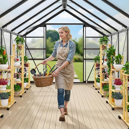YITAHOME Polycarbonate 6x8FT Greenhouse Heavy Duty Green Houses Outdoor Greenhouses Aluminum Sliding Doors Vent Window Premium Large Sun House for Garden Backyard, Black