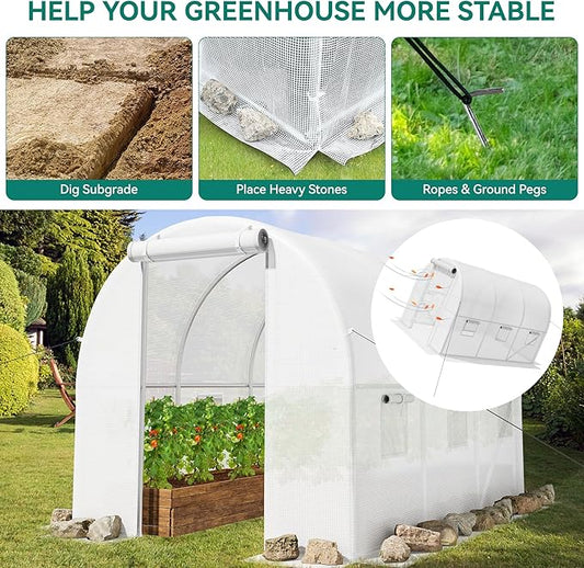YITAHOME 10x6.5x6.5ft Greenhouses Large Walk-in Green House Heavy Duty Tunnel Green Houses Outdoor Portable Plant Gardening Upgraded Galvanized Steel Frame Zipper Doors 5 Crossbars Garden, White