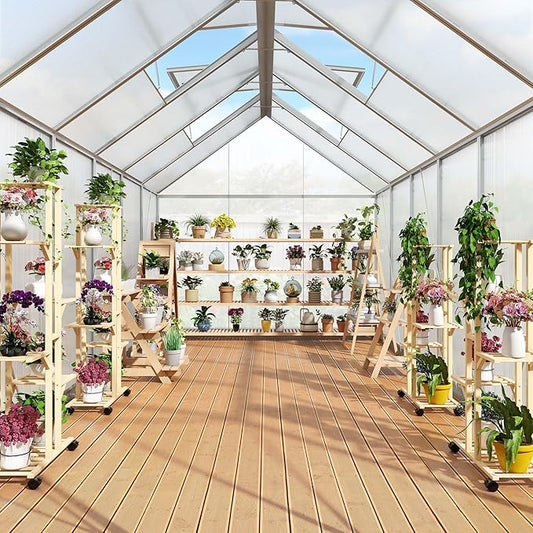 YITAHOME 12x6FT Polycarbonate Greenhouse Large Heavy Duty Green Houses Outdoor Aluminum Greenhouses with Sliding Doors Vent Window Walk-in Greenhouse for Garden Backyard, Silver