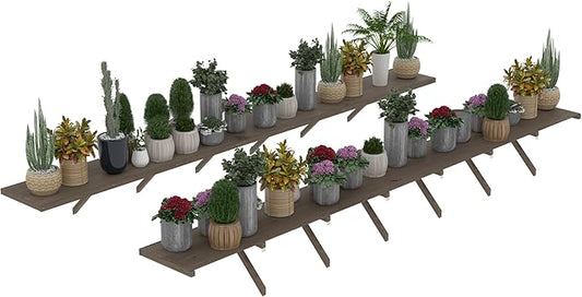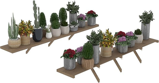 Shelf Suitable for 8x14FT Wood Greenhouse, 161" Wooden Storage Shelf Kit Fit Multiple Greenhouse, Horticulture Workstation, Work Bench System Shelving, Light Mocha Brown, 2 Pack
